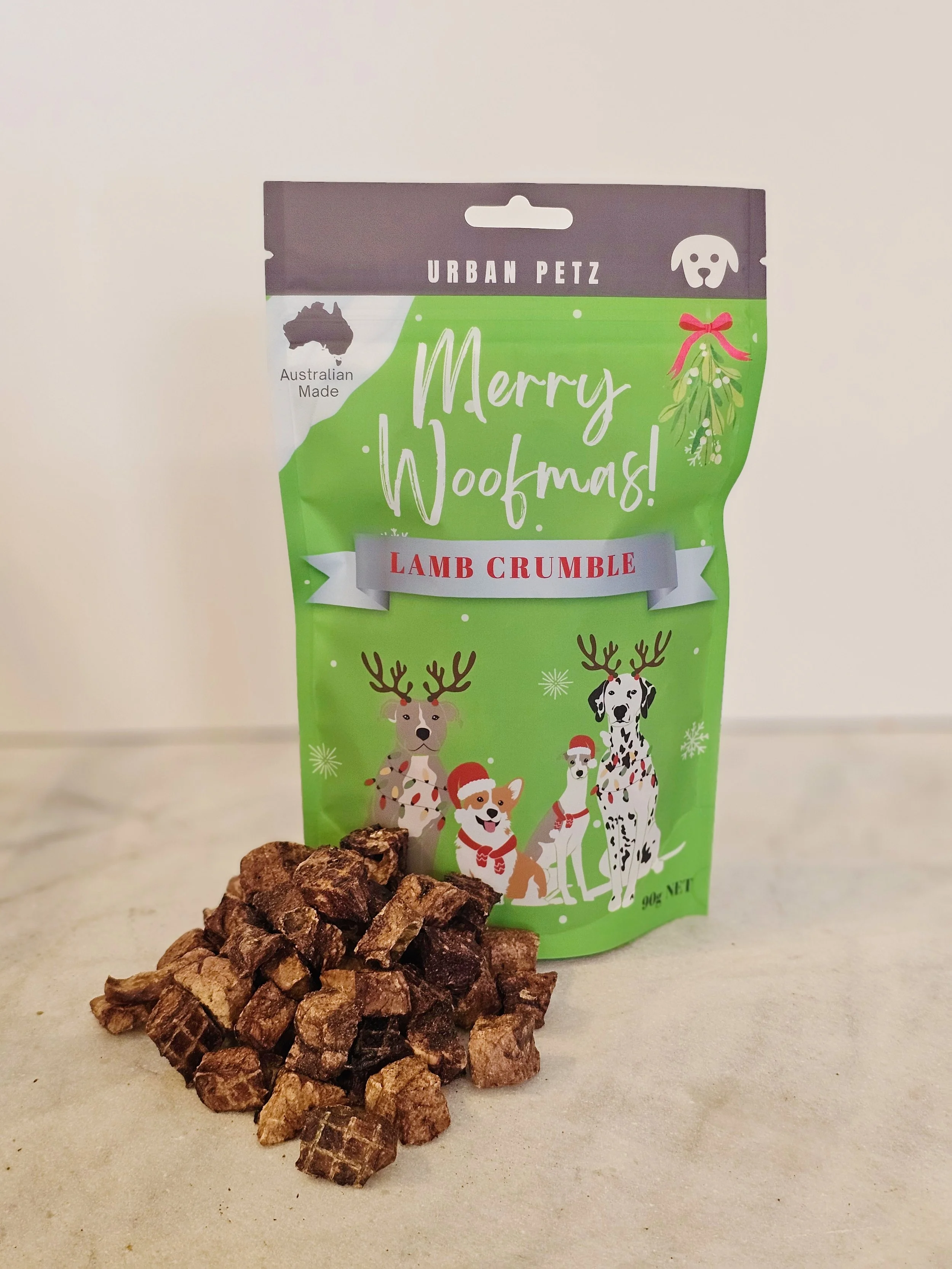 Make your dog’s holiday extra special with our Woofmas Christmas Pack, starring deliciously light and crunchy Kangaroo Crumble! Made from 100% Australian kangaroo lung, this all-natural treat is packed with protein and has a unique airy texture that dogs simply can’t resist. Perfect for stuffing stockings or rewarding good behavior, it’s a healthy, low-fat snack sure to be your dog’s favorite gift this festive season! 🐶🎁